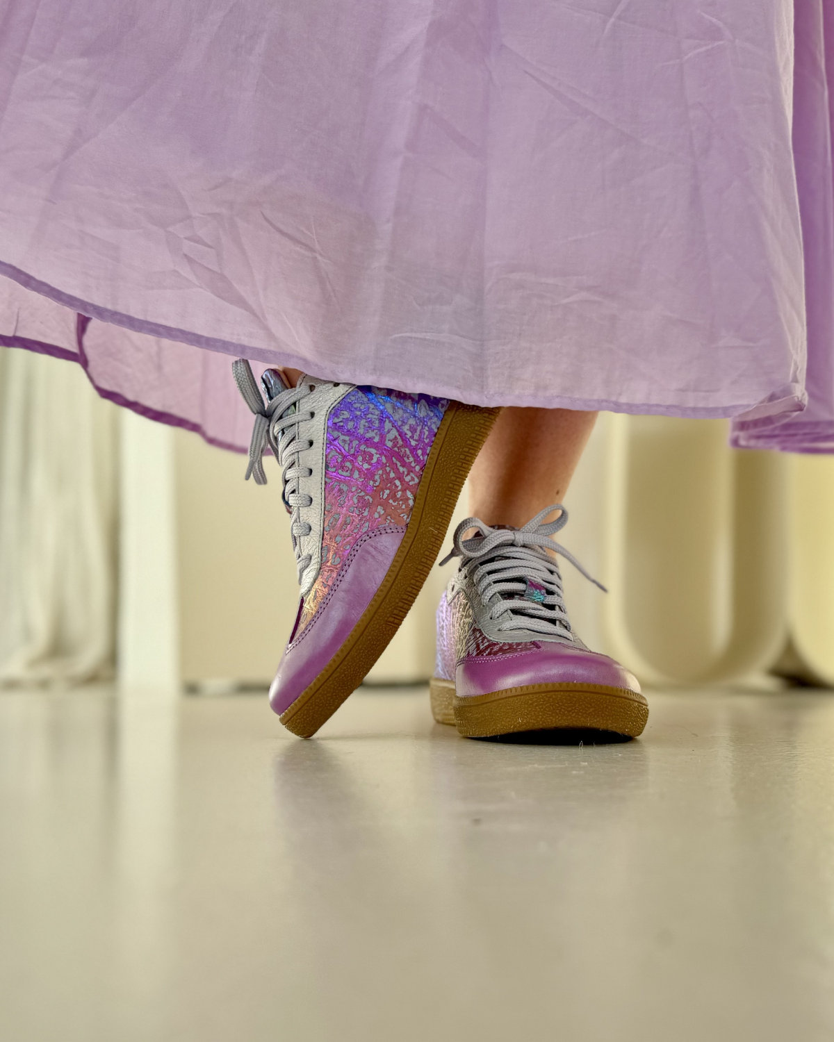 Buty wykonane są ze skóry naturalnej. Sznurówki są w odcieniu purpury. Wnętrze buta wyściełane jest skórą naturalną.