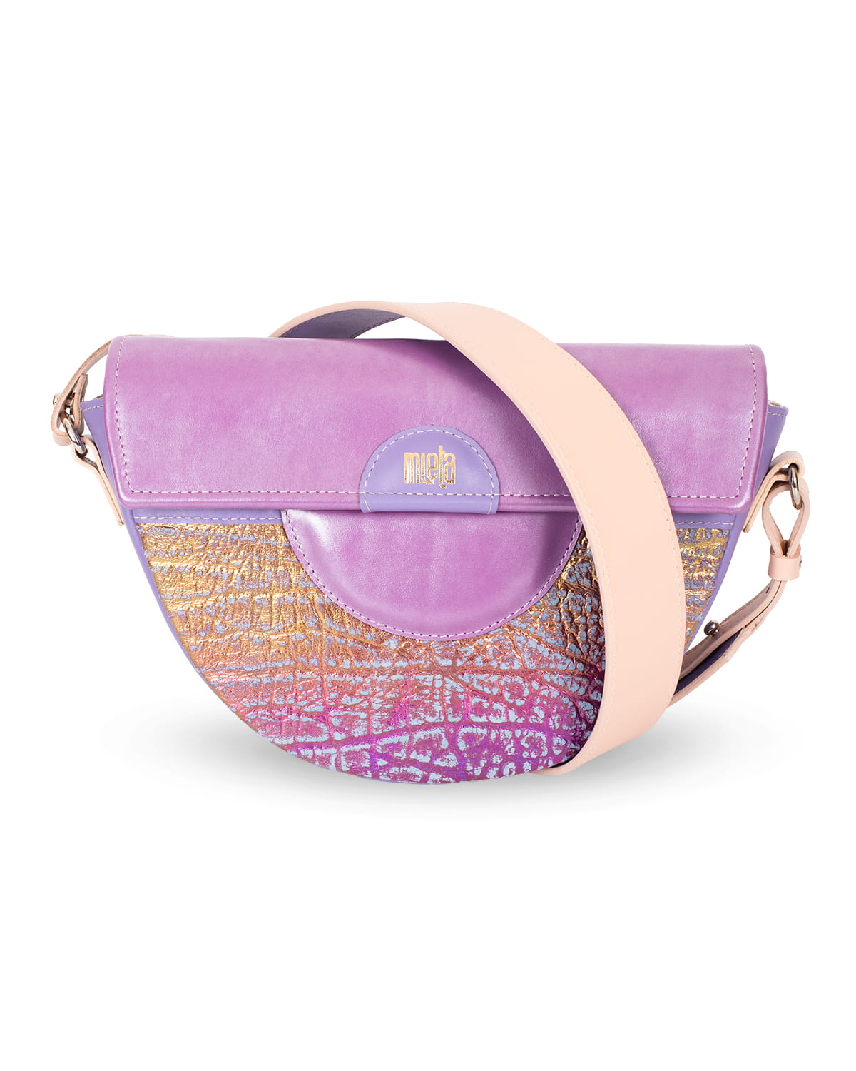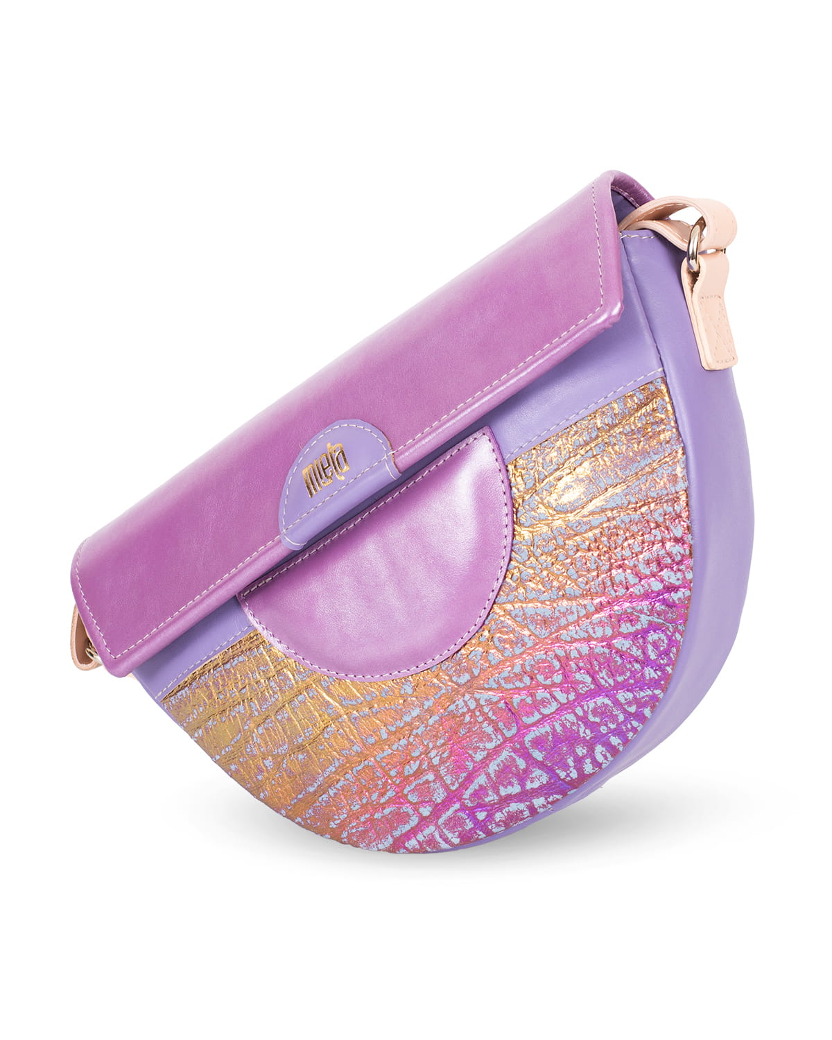 Half Moon Tęczowy Słoń zachwyci Cię swoją fakturą i mnogością barw. Tęczowa faktura, metalizowana lilia, fiołek i puder to idealna propozycja dla fanek subtelności z nutą ekstrawagancji.