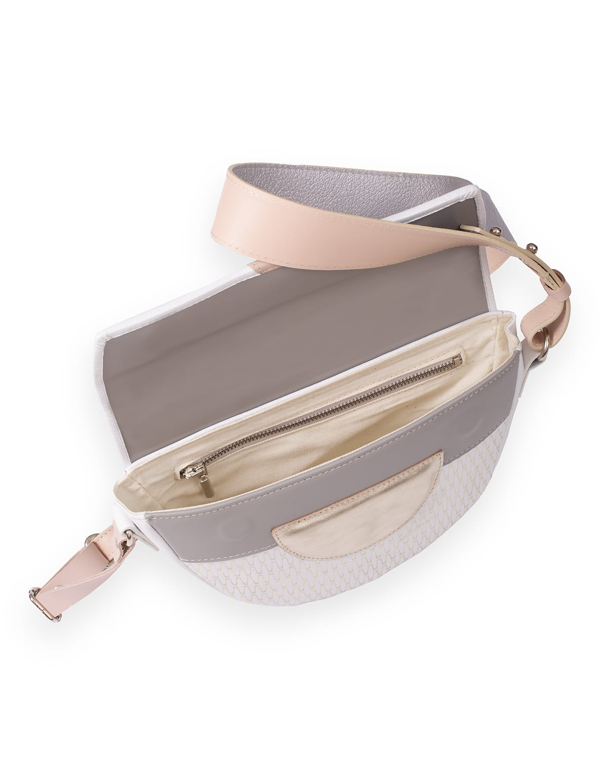 To mała skórzana torebka - listonoszka, która będzie nie tylko awangardowym dodatkiem ale i pomieści wszystkie niezbędne drobiazgi- miętowy portfel, telefon, kosmetyki i karty. Nasz Half Moon w całości został wykonany z najlepszych jakościowo włoskich i polskich skór naturalnych.